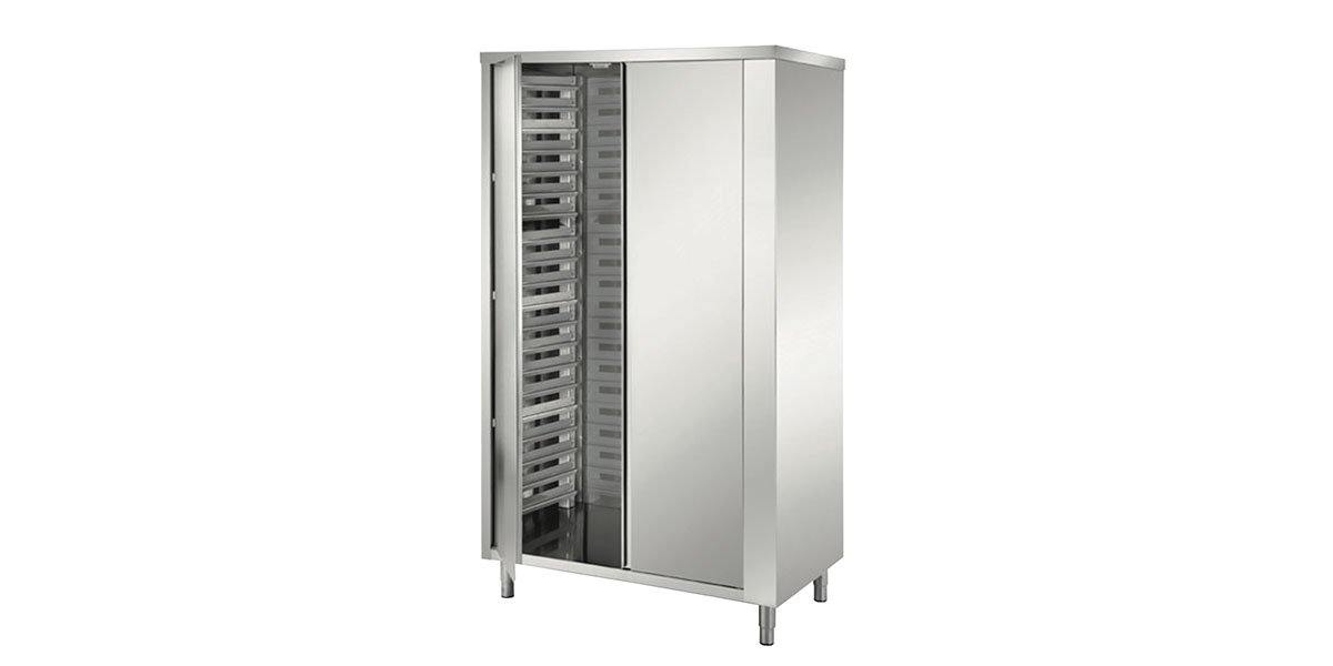 L'armadio ha una robusta struttura in acciaio INOX 18/10 - AISI 304 con finitura Scotch Brite, anticorrosione e antitaglio.