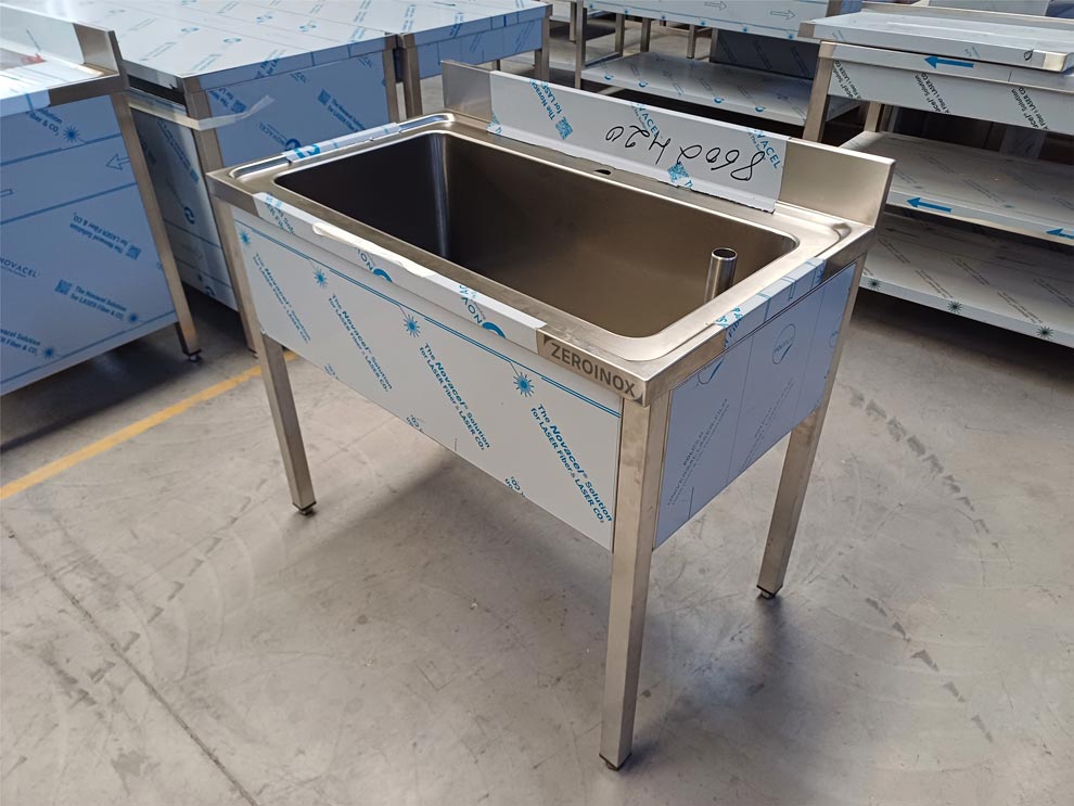 - Lavatoio completamente in acciaio inox AISI 304 18/10 scotch brite, anticorrosione e antitaglio