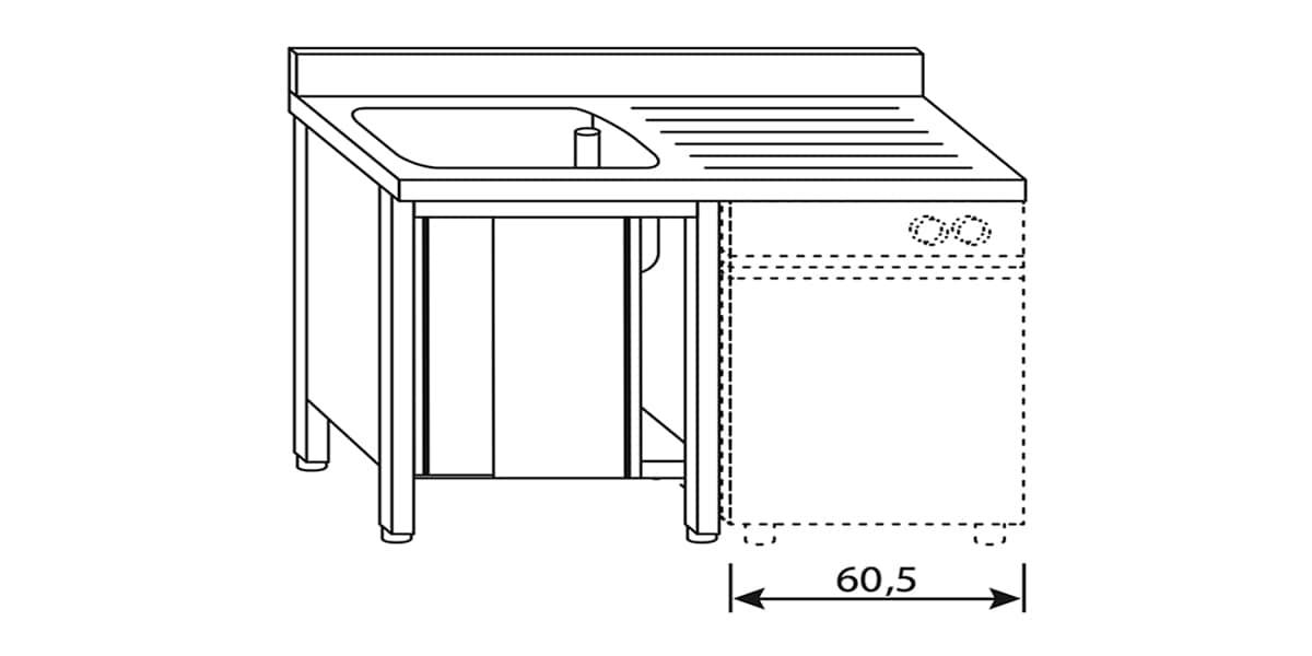 Lavatoio su gambe con sottopiano, vasca singola e gocciolatoio a destra per lavastoviglie