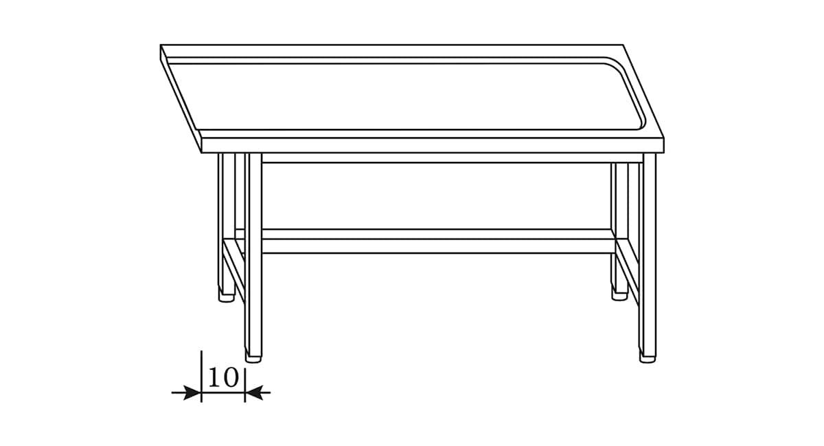Tavolo uscita lavastoviglie con piano di lavoro in acciaio inox AISI 304 satinato scotch brite con aggancio macchina lavastoviglie bordi di contenimento per scorrimento cestelli.